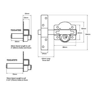 The TSS Rim Gate Lock is a premium double locking long throw gate lock which is key lockable from both sides. Supplied in 2 different barrel lengths, 50mm or 70mm. 50mm Barrel Length to suit 2″ (50mm) Gates and Doors 70mm Barrel Length to suit 2 3/4″ (70mm) Gates & Doors Features a carbon steel…
