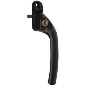 Theseu00a0Hoppe Tokyo offset cranked locking espag window handles are designed for use with UPVC windows. rn With a backplate of 59mm x 17mm, these handles have a standardu00a0distance between screwsu00a0of 43mm. rn Available in several different variants. Please refer to the table below.