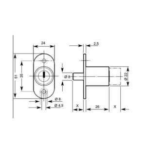 This L&F 5840 vertical chrome finished cam lock uses a screw fix fixing. The lock is supplied key to differ but can be keyed alike on request