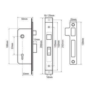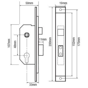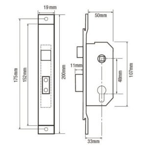 This Willenhall M5 2″ 5 Lever ortice sashlock straight extended forend is designed for narrow stile timber doors. With a 33mm backset and a 50mm deep case, these locks are ideal for doors with narrow stiles such as glazed or french doors. Supllied in singles.