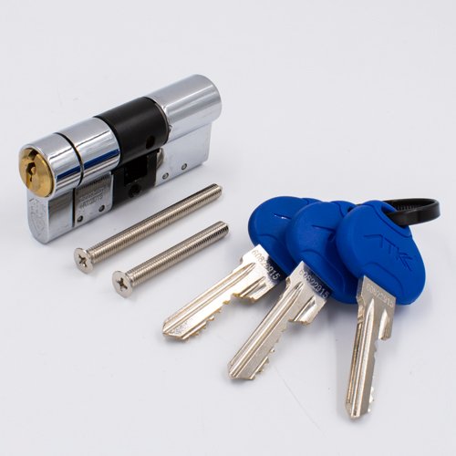 ATK 3* British Standard Euro Double Cylinder. Anti bump, anti snap, anti drill and anti pick. ATK 3* euro double cylinder. The cylinder has the snap on the second 2nd side and it features a chrome housing with a brass plug. This cylinder is TS007, British standard 3*. Supplied boxed in singles.