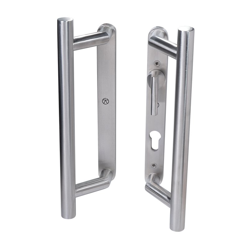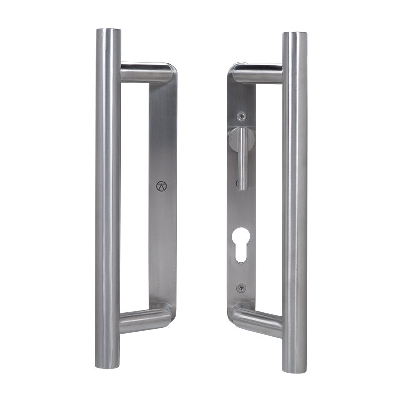 Coastal Group Patio Door Handles Back to Back Blank Plate & Euro Cut-Out with Lever BLU KM950 316 Stainless Steel