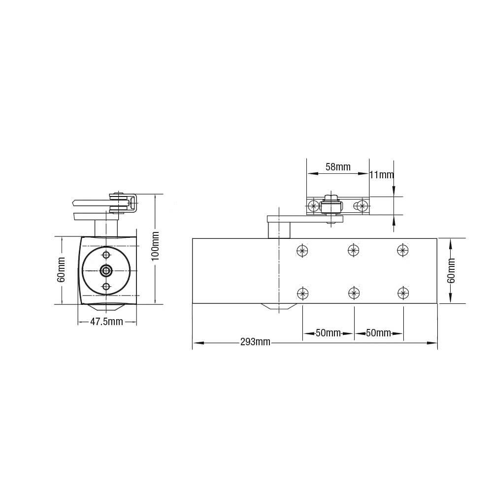 This door closer features backcheck, adjustable closing speed and adjustable latch action – See FAQs for more information on how these functions work.