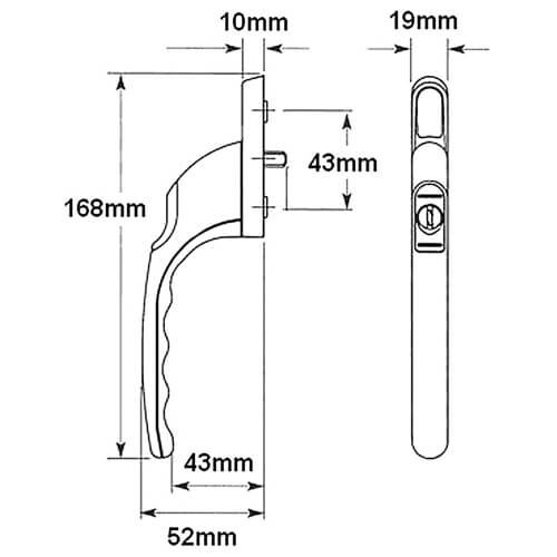 ERA inline locking espag window handle. ERA window handles are supplied clam visipacked for retail display purposes. Spindles can be cut to size. There are several variants available. Please refer to the table below.