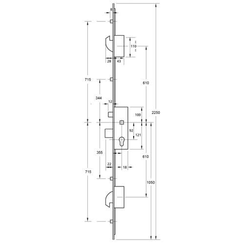 ERA multipoint door lock gearboxes are very distinctive, with a square design and no corner cut outs. The overall length of the gearbox is 221mm and the width is the backset plus 18mm.
