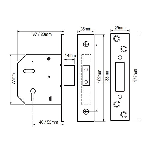Supplied with 2 keys, a keep and escutcheons.