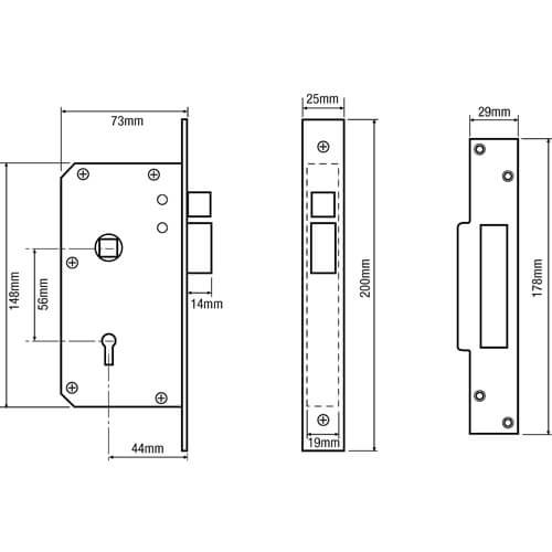 This Union (ex Chubb) 3K70 sashlock is a 5 detainer mortice lock designed for timber doors with a thickness of up to 50mm.