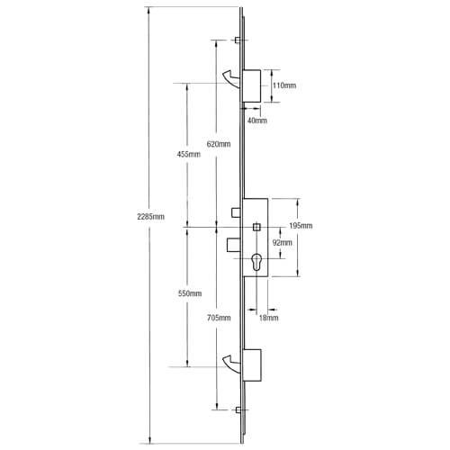 GU Europa Latch Deadbolt 2 Hooks 2 Rollers Lift Lever Multipoint Door Lock – Option 1