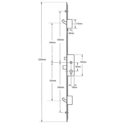 GU Europa Latch Deadbolt 2 Hooks 2 Rollers Split Spindle Multipoint Door Lock – Option 1