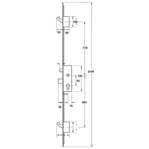 GU Europa Latch Deadbolt 2 Hooks 20mm Flat Faceplate Lift Lever Multipoint Door Lock