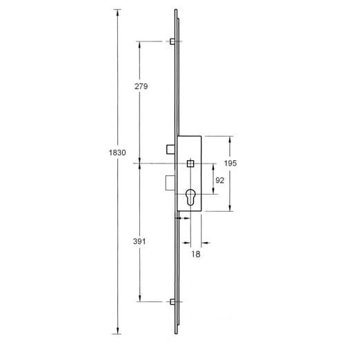 GU multipoint lock gearboxes feature a latch and deadbolt and measure 191mm high (excluding the fixing lugs) by the backset + 16mm wide. The latch is 32mm high, the deadbolt measures 35mm high and there is 54mm from the bottom of the latch to the top of the deadbolt.