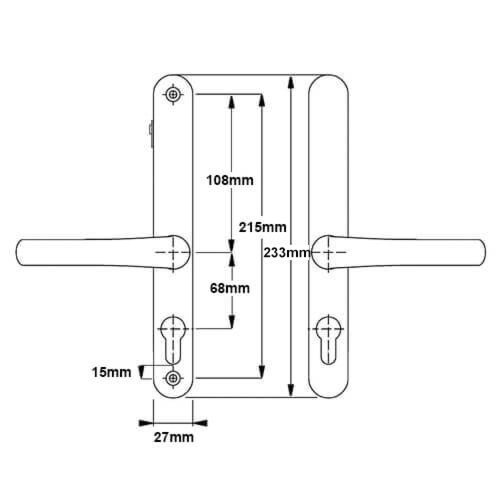 The distance between the fixing screws is 215mm with the bottom screw positioned 15mm below the euro profile cut-out.