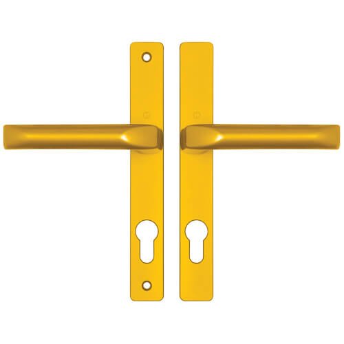 These Hoppe handles from the London range, which have unsprung 72pz internal & external levers, were commonly used on the Fuhr 3 part multipoint range. With a backplate size of 205mm x 28mm they are available in various finishes.They are not compatible with spring cassettes.
