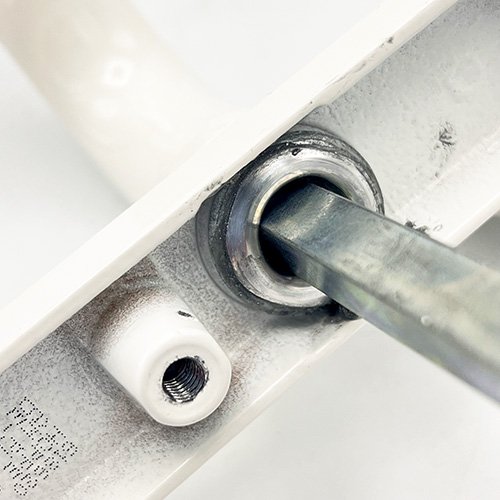 They are supplied as a pair complete with an 8mm square spindle & 2 colour co-ordinated bolt through M5 screws to suit door thickness 56-70mm.