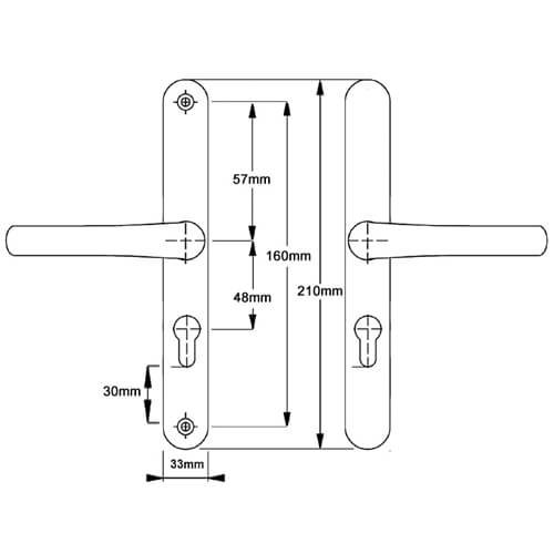 The distance between the fixing screws is 160mm with the bottom screw positioned 30mm below the euro profile cut-out.
