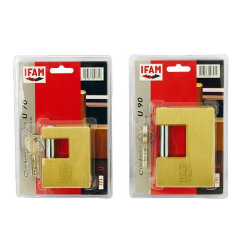 Available in two sizes (70mm and 90 mm), the U Series security padlocksfrom IFAM are especially designed for vertical grille type closures andshutters. It can also be used with H14 and M10 chains from IFAM andinclude key profiles that are compatible with the cylinders, rim locks,locks and other padlocks from the brand.