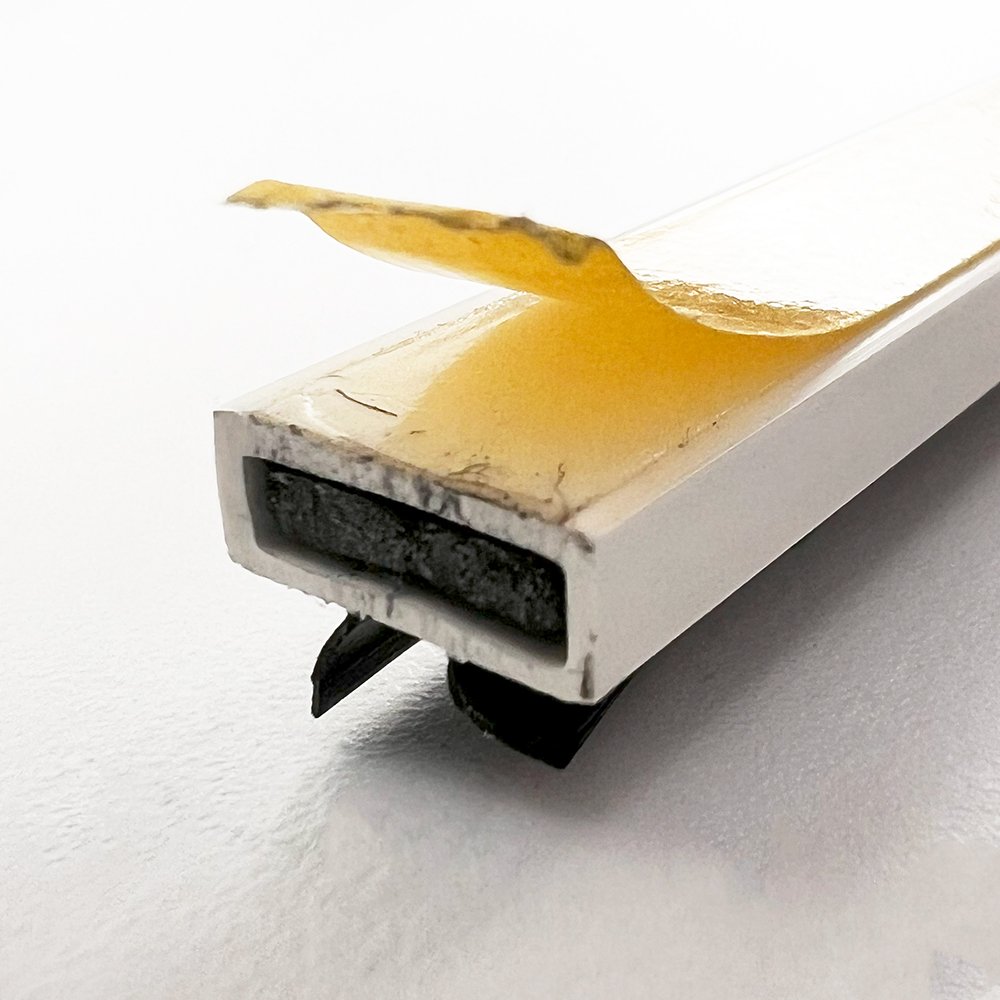 Intumescent fire and smoke seals for fire door assemblies. An intumescent graphite based fire seal contained within a PVC sleeve for fitting into a rebate to either the leaves or the frame of a door. In the event of a fire the seal expands (intumesces) to many times its original volume and seals the gap around the door to provide a safe and effective barrier against the passage of fire, smoke and hot gases. All fire and smoke seals are supplied with a self-adhesive backing tape as standard to facilitate quick and easy fitting. Intumescent Fire Seals are available with or without a cold smoke seal in the form of a nylon pile. Smoke seals provide a permanent barrier to smoke – particularly important as smoke fumes travel faster and further than the fire itself. Intumescent fire seal with a black Neoprene twin blade smoke seal. Available in various colours.