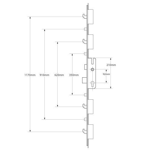 KFV multipoint door lock gearboxes are single spindle and 92mm centres.