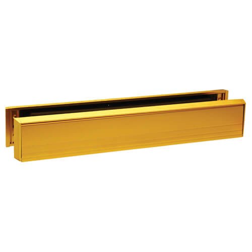 Slimline letterplate for doors which cannot accept standard height plates. Fixings not supplied. All metal construction, no internal brush seal. Use on doors with slim midrails or at the bottom of the door. Suits door thickness 36-70mm.