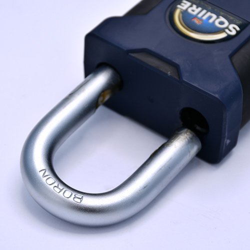Squire’s E version of the Stronghold accepts half euro cylinders to allow it to be incorporated into masterkey systems. Open shackle in 65mm