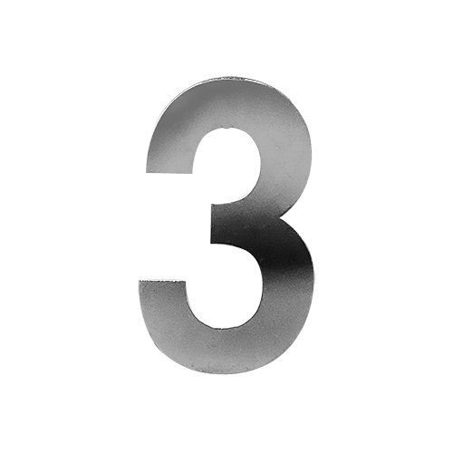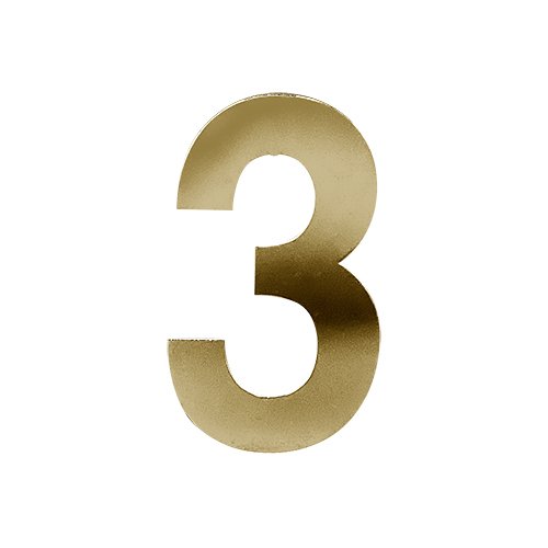 The Numerals are 3” (75mm) in length, made from 201 Stainless Steel and available in Polished Brass or Polished Chrome.