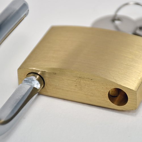 TSS Brass Body Open Shackle Padlock Range with a Hardened Steel Shackle offers a full range of sizes, available either Keyed to Differ or Keyed Alike and supplied with 3 Keys.