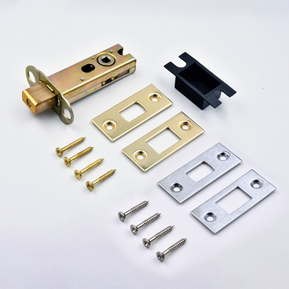 Instead of a latch, this tubular lock contains a small deadbolt for more secure locking.
