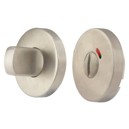 A bathroom indicator and turn set finished in Satin Stainless Steel finish, ideally suited for use in commercial or modern domestic environments.