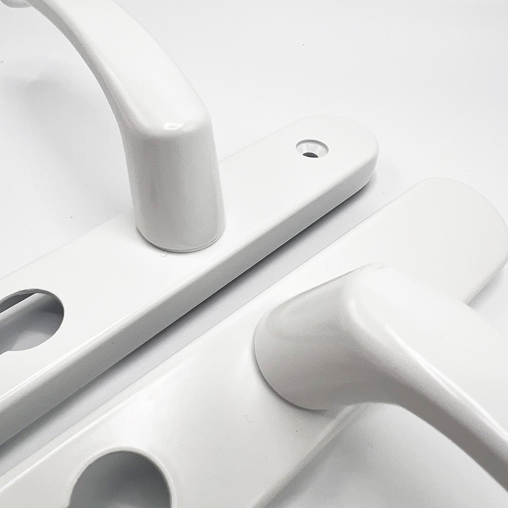The 48mm PZ TSS lever/lever multipoint door handle is a high-quality multipoint door handle that is available in a range of finishes, including white, black, polished chrome, silver and polished brass.