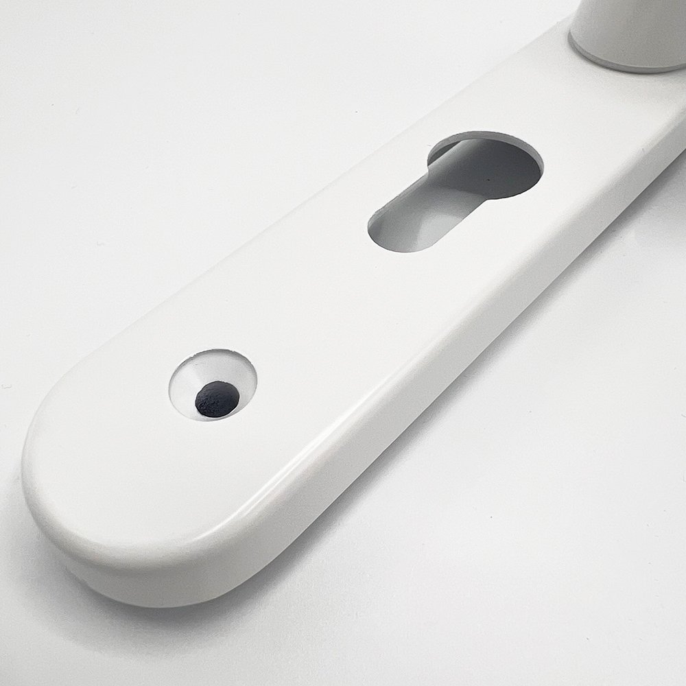 The 48mm PZ TSS lever/lever multipoint door handle is a high-quality multipoint door handle that is available in a range of finishes, including white, black, polished chrome, silver and polished brass.