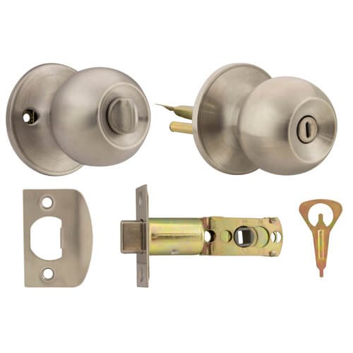 This knobsetfeatures an external knob with emergency release and internal locking knob turn on the inside. Available in brass and stainless steel.