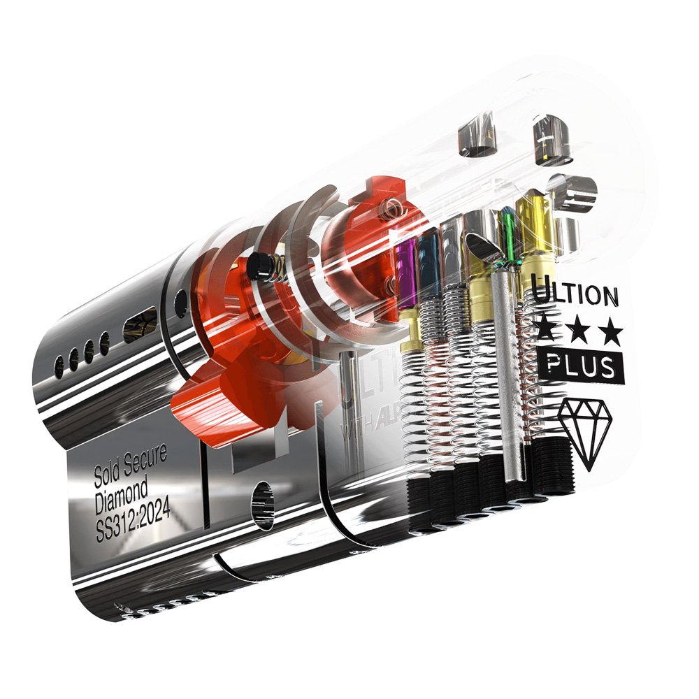 Ultion Plus Euro Double Cylinders British Standard Kitemarked TS007 3* provides the highest level of protection for exterior doors and padlocks. It is easy to install, packed with the latest anti-break technology, and comes complete with a £5,000 5-year guarantee.