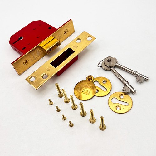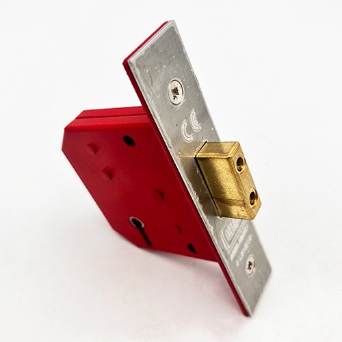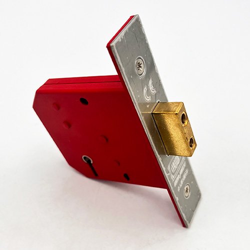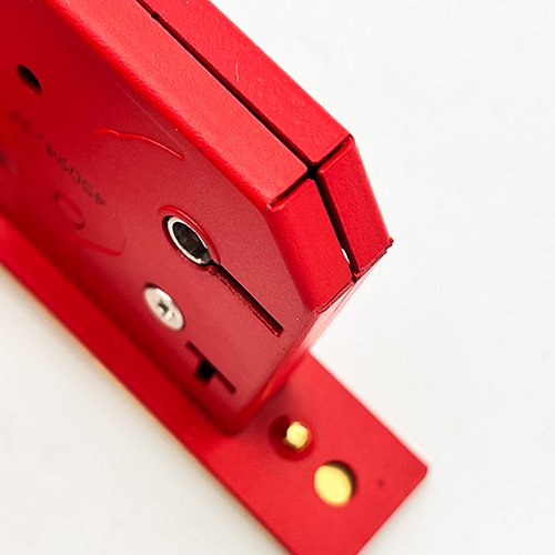 These deadlocks have a red, powder coated steel case and a brass deadbolt with hardened steel rollers to help prevent against sawing.
