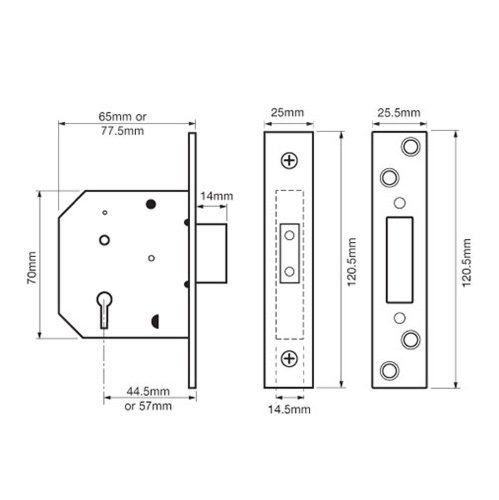 These Union 2101 5 Lever Mortice Deadlocks are designed to suit timber doors up to 54mm thick.