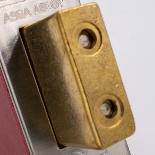 It’s 20mm brass deadbolt contains hardened steel rollers for resistance against hacksawing.