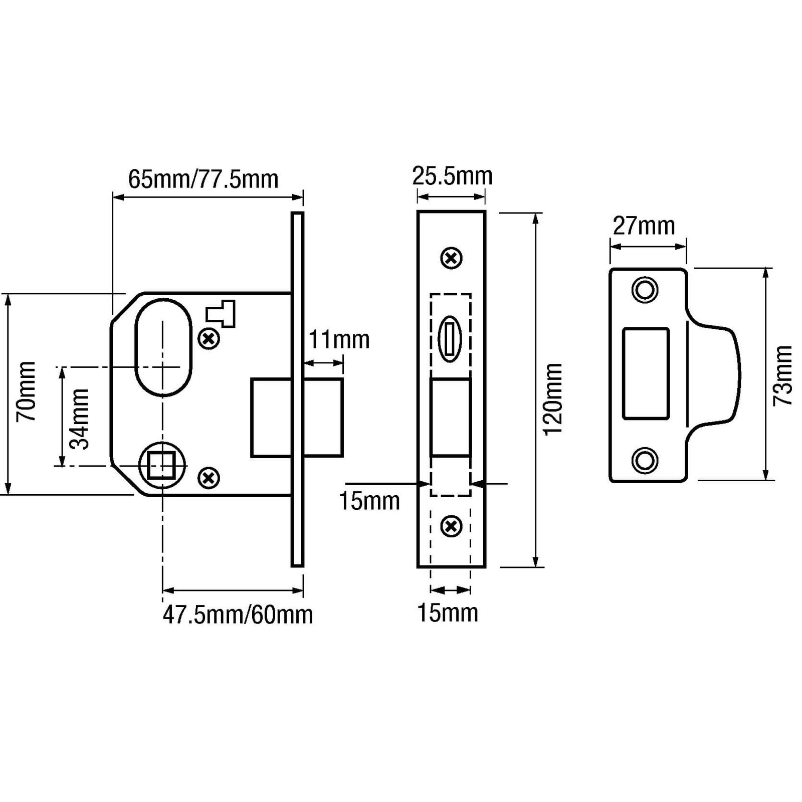 | Backset | 47mm, 60mm |