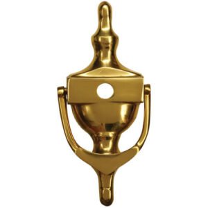 This UPVC metal door knocker with a classic Victorian Urn design and a hole for the viewer. rn Suitable for both timber and UPVC doors. rn Available in a range of colours rn Supplied with 2 fixing bolts.