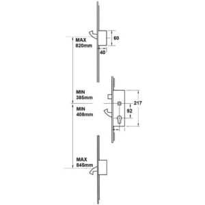 Adjustable length and hook positions to fit most PVCu doors. Supplied with pre-assembled keeps using the patented uni-packer system for fast easy and reliable installation. Operation: Split spindle or lift lever. Latch reversal: Undo the screw in the latch to remove. Reverse, reinsert and replace screw. Nightlatch reversal: Automatically reverses.