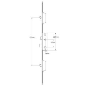 These Maco Inline Espags are non-croppable espagnolette with mushroom locking points. rn With an 22mm backset gearbox, designed for profiles without a Eurogroove and featuring profile-related keeps with night-vent position for air circulation. rn Adjustable 7.7mm mushroom cams with 19mm cam travel and 240 hours salt spray corrosion resistance.