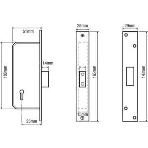 These TWH 5511 5 lever mortice deadlocks were formally made by Legge and are no longer British Standard. The narrow design of the case makes these locks ideal for doors with a narrow style such as french doors. Supplied with 3 keys, a keep and a pair of escutcheons.
